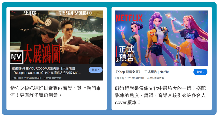 - 音樂、舞蹈、卡點,在短影音的世界是一套非常容易傳播的公式!尤其在有影集、名人新歌創作的當下,更為有效。