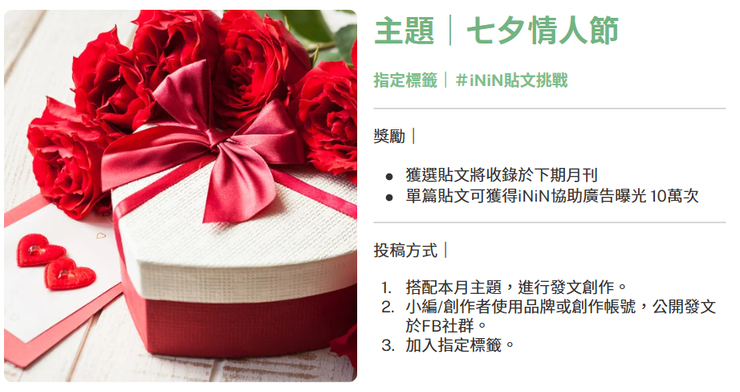 iNiN貼文挑戰-七夕主題貼文投稿。