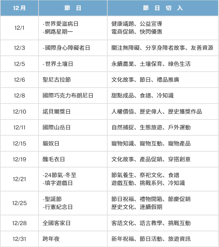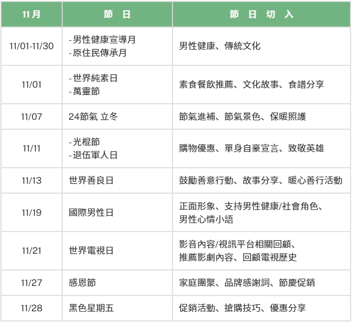 社群內容靈感來源第⼀步,先從特殊節⽇、活動下⼿吧!