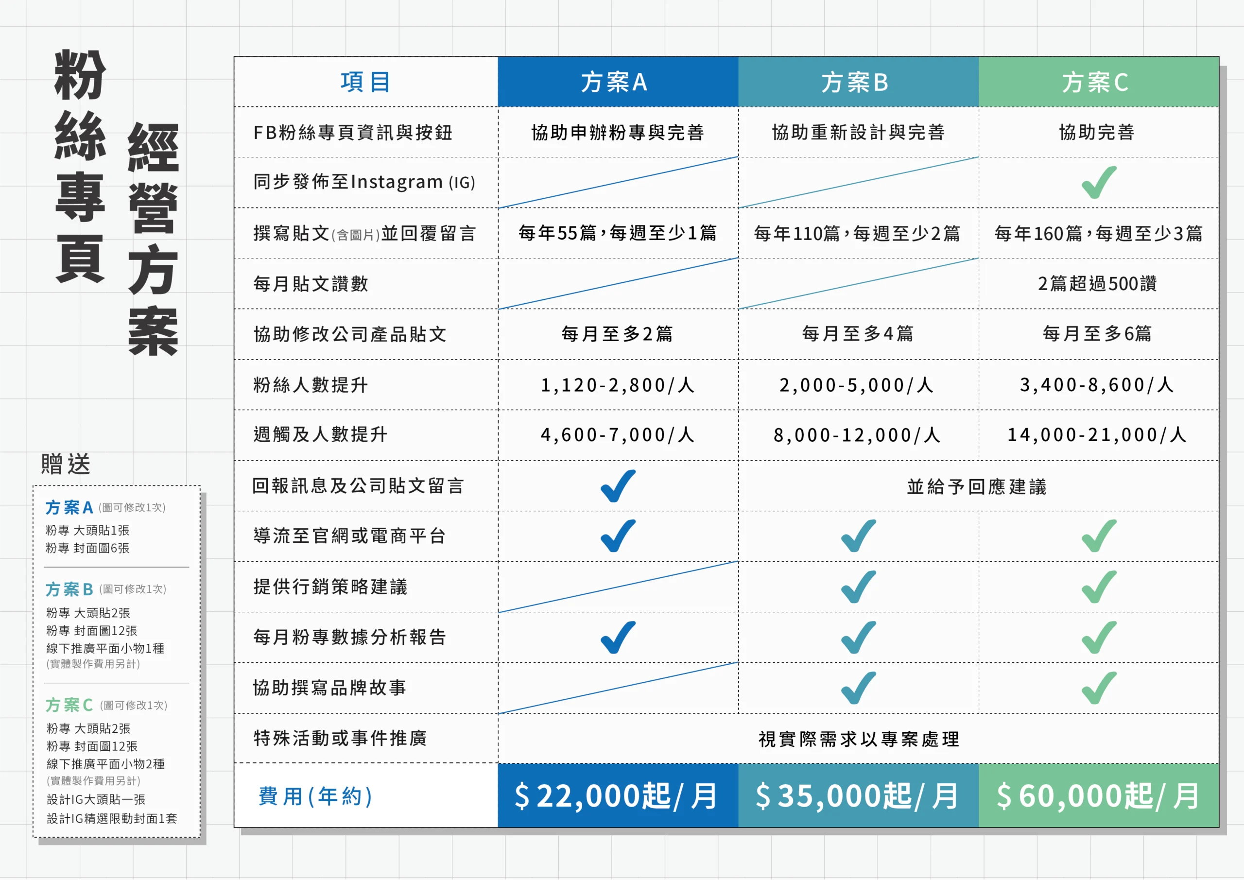 總共有三個方案可以挑選,可以依照粉專的粉絲數為依據,挑選最適合您的方案
